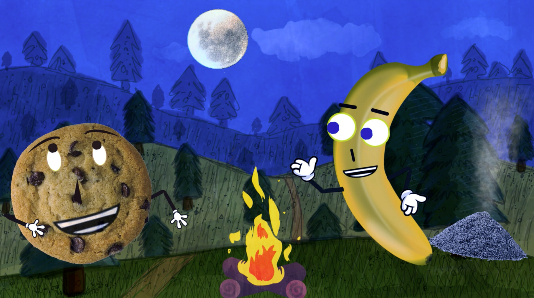 In Banana & Cookie in Camping Capers, two friends go on a camping trip that ends in disaster but, ultimately, brings them closer together.