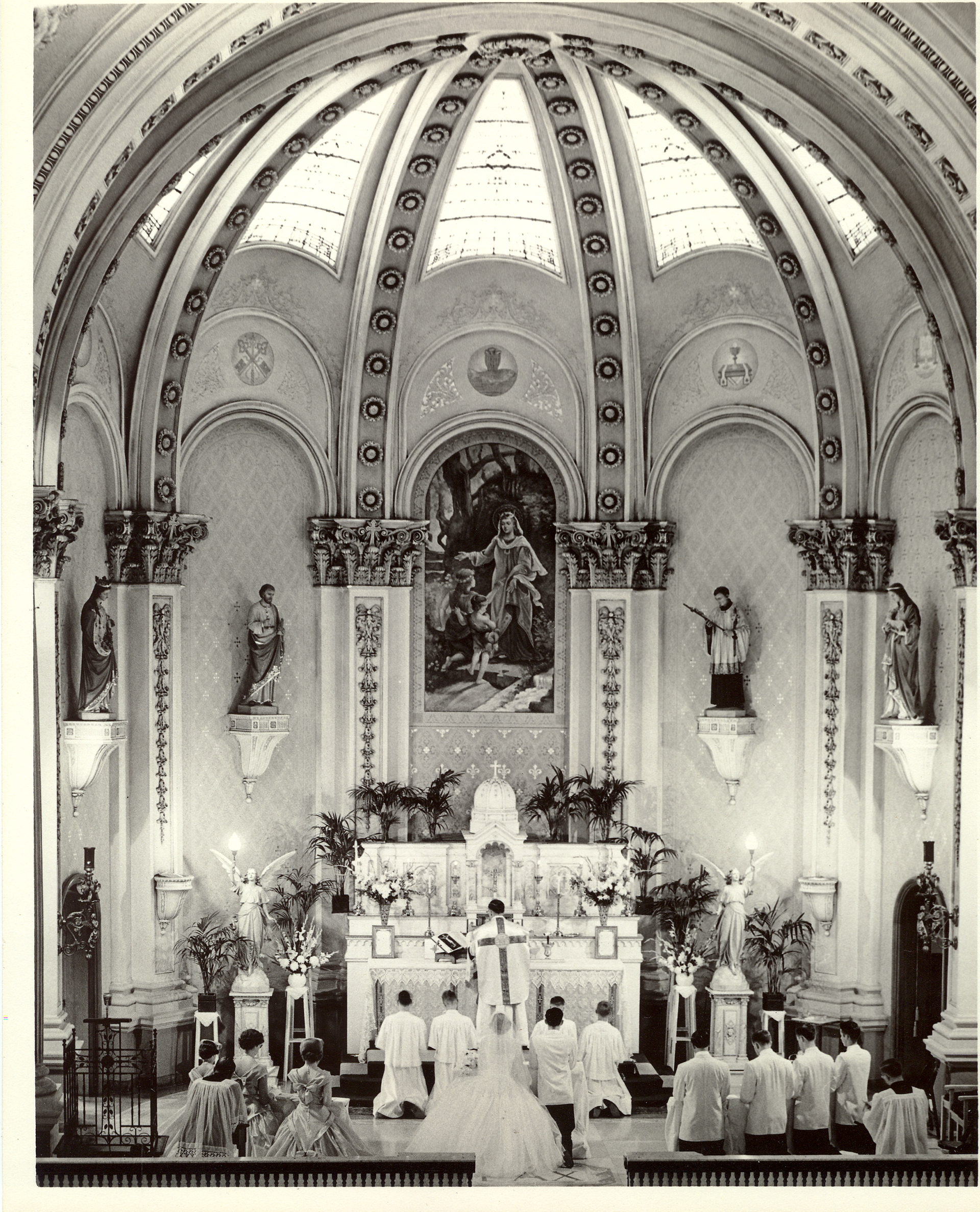 Monsignor Dudine's extraordinary tenure at St. Elizabeth saw the church through challenging times: World War Two and the second Vatican Council, which implemented modernization throughout the Catholic Church. Dudine expanded and beautified the St. Elizabeth property, and supported many artistic endeavors to embellish the church, all the while exemplifying Christian charity by caring for those less fortunate. Monsignor Dudine stepped down as pastor in 1967.